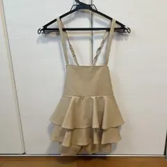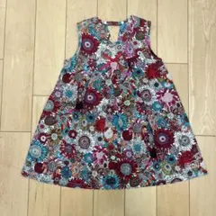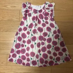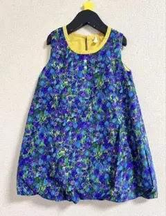 オリーブグリーンのノースリーブワンピース、フラワープリント付き。
