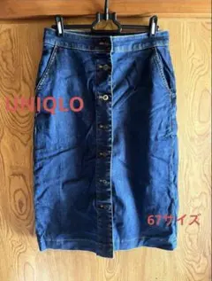 デニム タイト スカート ボタン付き ひざ丈 F 春 夏 ブルー 無地