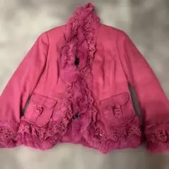 ブラウンのファーコート、ラウンドネックデザインでカジュアルに最適。