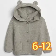 アイボリーのケーブル編みカーディガン、バルーンスリーブデザイン。