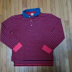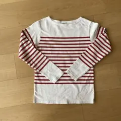 赤と青のストライプが特徴の長袖カットソー。