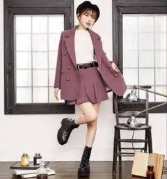 ふわっとした袖のニットとハイウエストスカートがセットになったデザインで、