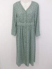 花柄のVネックマキシワンピース、フレンチスリーブ、ゴム入りウエストで快適な着心地。
