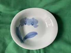 白地に緑の葉と赤い花の装飾が美しい陶器製の丸型ボウル。