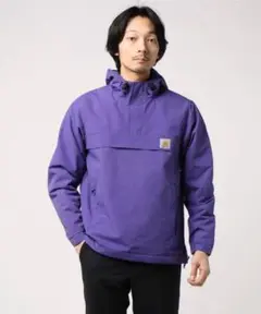 Carharttのアノラックタイプのジャケットです。カラーはネイビー、サイズはMサイズです。シンプルで使いやすいデザインで、ストリートやカジュアルコーデにぴったりです。