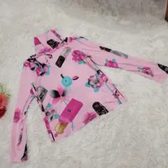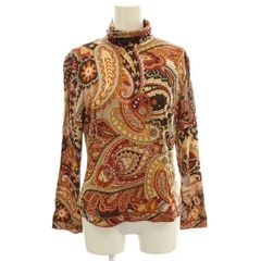 フラワープリントのハイネック長袖トップス、サイズ42。
