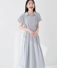 ナチュラルクチュール 涼しげスキッパー衿お上品ワンピース ベージュ