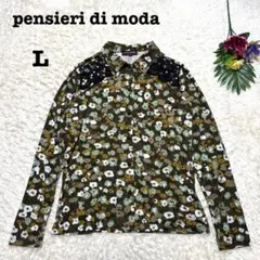 新品未使用【mode san】モードサン 長袖シアーシャツ ベージュ 9 総柄