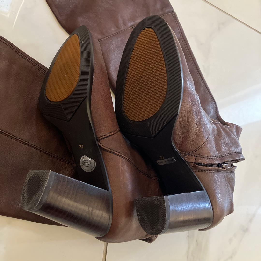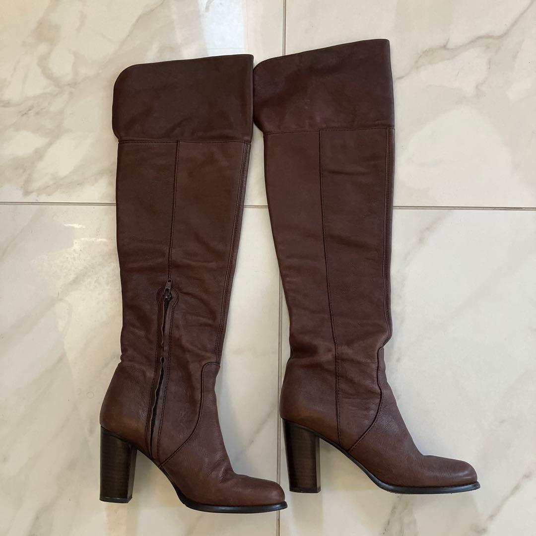 折らなければニーハイブーツとして、折ればロングブーツとして履けますがロングブーツとして履き保管していたため折っていた部分に折れ目ができています。