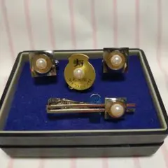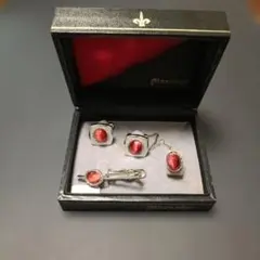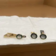エナメル仕上げの盾デザインのネクタイピンとカフスセット。