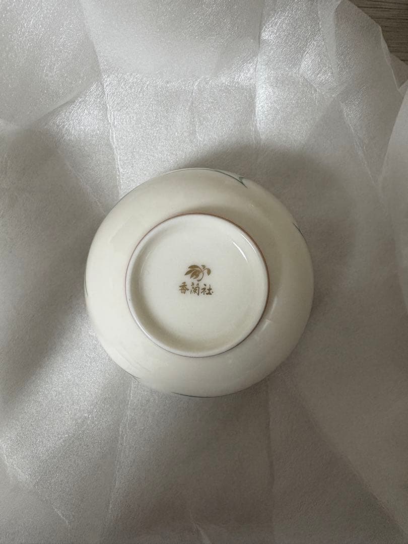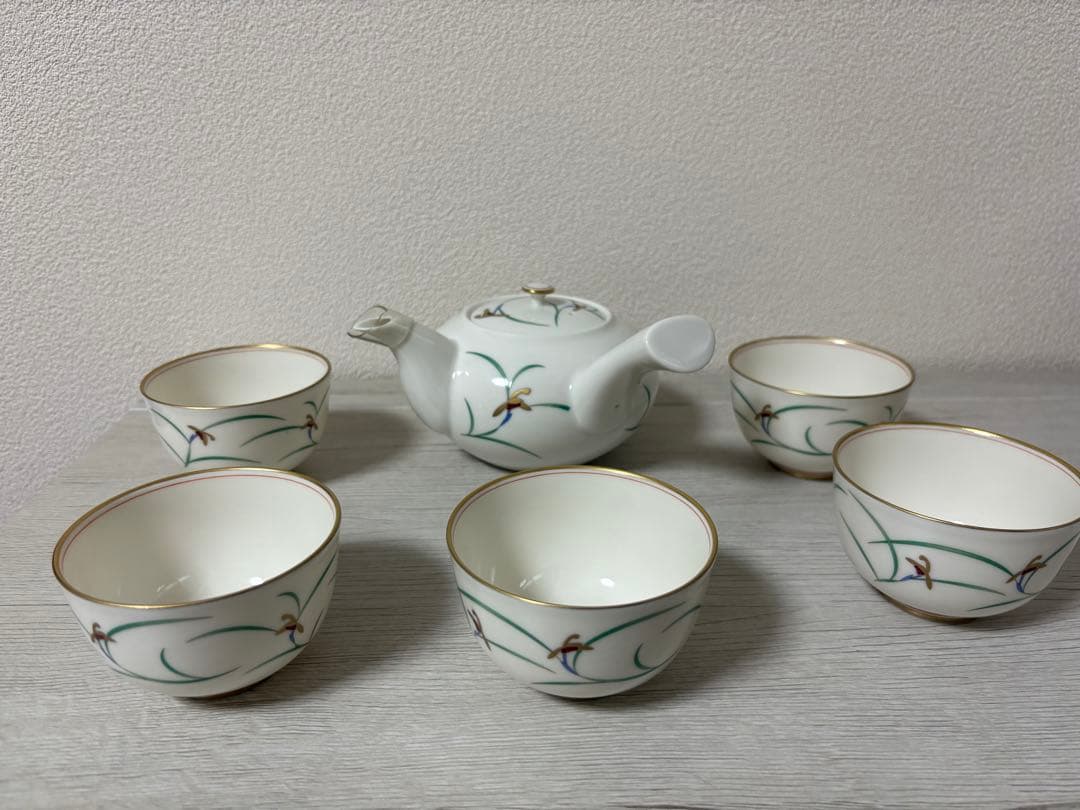 花柄の装飾が施された陶器の急須と湯呑のセット。