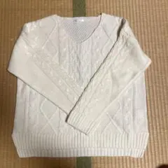 シネマクラブ ニット セーター ケーブル編み Vネック オフホワイト S 長袖