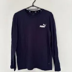 PUMAの140サイズの長袖カットソー、ネイビー地にグラフィックプリントが特徴。