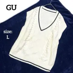 GU ダークグレーのVネックニットビスチェ、リボン付きでカジュアルスタイルに最適。