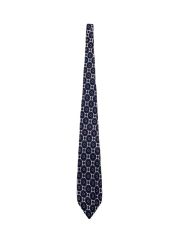 シルク100%のネイビーストライプネクタイ、イタリア製。