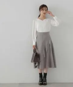 ブラウスやニットプルオーバーまで相性が良く、大人フェミニンな通勤スタイルが完成します。