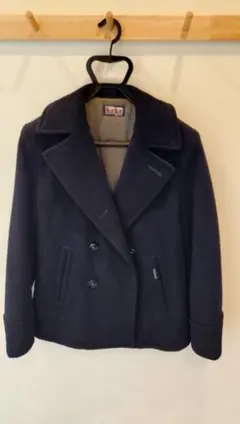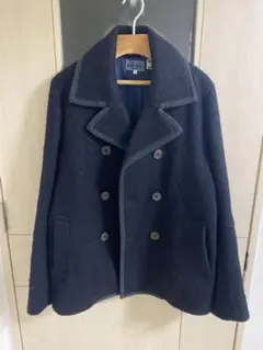 BLUE BLUE ウール ダブルブレストピーコート L ネイビー