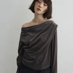 しっかりとした生地感で伸縮性があり、肩のデザインが腕を細く見せてスタイルアップした印象を与えます。