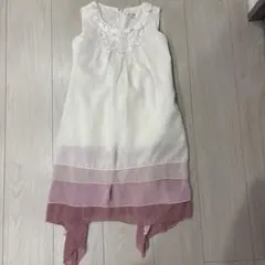 アイボリーのレースドレス、リボンとフラワーアクセント付き。