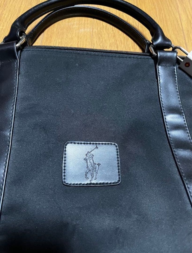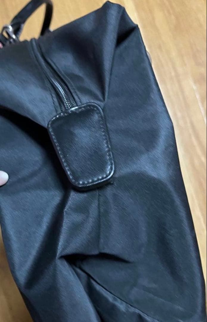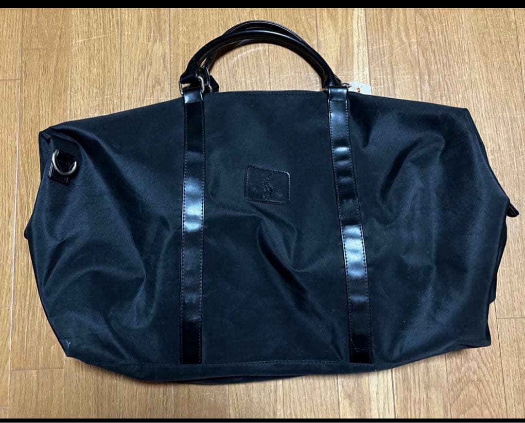 シンプルなデザインの大容量黒ナイロンボストンバッグ。