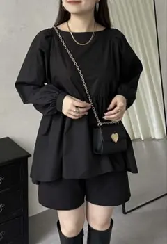 prose verse フラワー刺繍パフスリーブペプラムブラウス ブラック