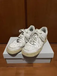 Nike Air Force 1のホワイトスニーカー、通気孔付きで快適な履き心地。