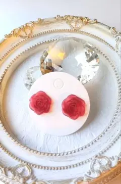 もものピアス。ハンドメイド ピンク 桃 フェルト フックピアス 揺れるピアス