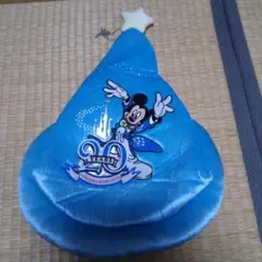 ◉ミッキーマウスには赤いサンタ帽子と、雪の結晶がデザインされた赤いマフラー 先端には「25周年」のタグが付いている