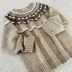 黒と白の花柄のセーター、ハイネックデザインでカジュアルに最適。