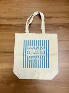 ピンクのストライプデザインのトートバッグ、内側にポケット付き。