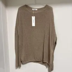ベージュの長袖トップス、ドローストリング付きでスタイリッシュ。