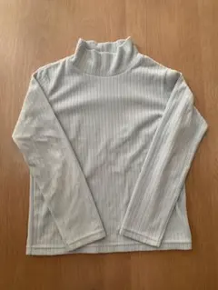 リブ編みの長袖カットソー、フリルネックデザインでおしゃれ。