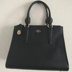コーチのシンプルでエレガントな黒のレザーハンドバッグです。