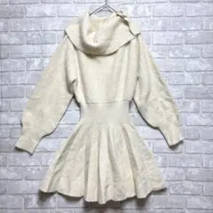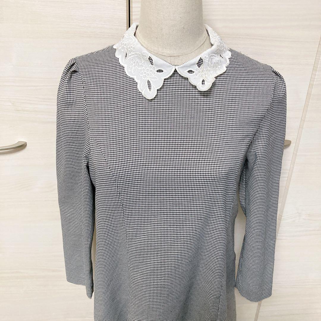 新品 未使用 タグ付き ワンピース 七分袖 膝下丈 レース 千鳥柄 春 秋 白黒