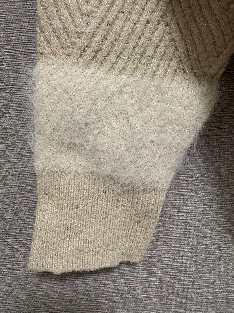 美品★Gready Brilliant ラメバイアス柄シャギー袖ニット