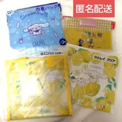 シナモロールのレモン柄イエローポーチとトレイのセット。