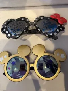ミッキーマウスの耳と魔法使いの帽子のカチューシャ、ミッキー型サングラス、それぞれ1つづつです。