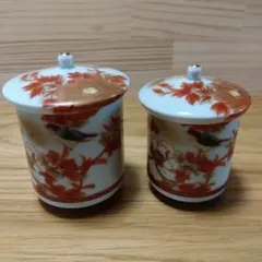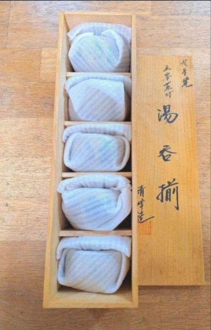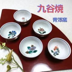 未使用⭐九谷焼 五客蓋付 湯呑揃 清峰造 茶器 レトロ 能登 復興 石川