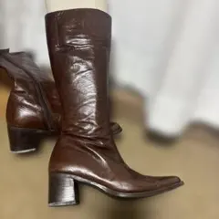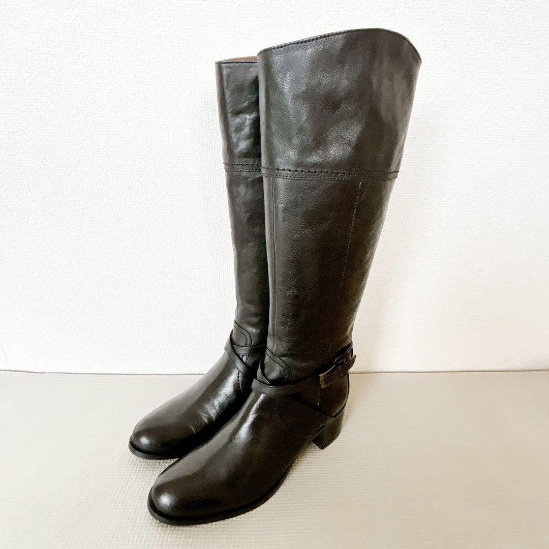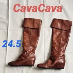 訳あり美品【cavacava】本革レザーロングブーツ ブラック サイドジップ