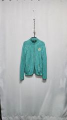 デザインはカジュアルなジッパーカーディガンですが、フロントとポケットのファスナー、胸の刺繍がゴールドで、本体に使われているレーヨン混素材にも光沢があり、洗練された雰囲気があります。