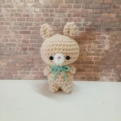 うさぎ あみぐるみ ハンドメイド 手編みキーホルダー(ベージュ)