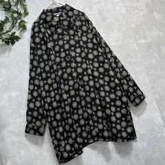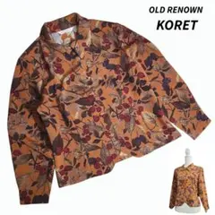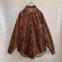 ヴィンテージ レトロ古着 総柄バンドカラーシャツ マオカラー 茶系