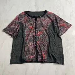 ヴィンテージ ジュエルネック 総柄 半袖 サイドスリット バックファスナー