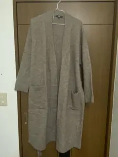 ユニクロのスフレヤーンベルテッドロングニットコートです。目立った汚れはありません。ポケットあり。ボタンは付いていないタイプです。