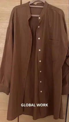 グローバルワーク グレー 長袖シャツ ボタンビッグ 襟