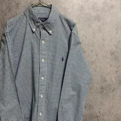 ギンガムチェック柄 長袖 ボタンダウン シャツ