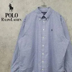 90s ポロ ラルフローレン ギンガムチェック 刺繍 シャツ レッド L 古着