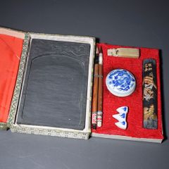 硯と小筆、墨がコンパクトにまとめられた携帯書道用具。