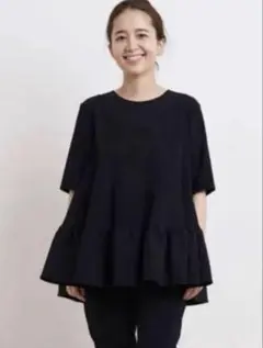 yori ヨリ スカラップカラー ブラウス フリル 半袖 ティアード 紺 ネイビー 38 Mサイズ トップス レディース 春 夏 秋 完売品 YR21-24052SM-3