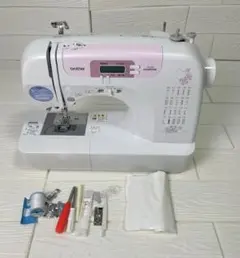 自動糸調子と縫い目選択機能を備えた、ホワイトとピンクのコンピューターミシン。